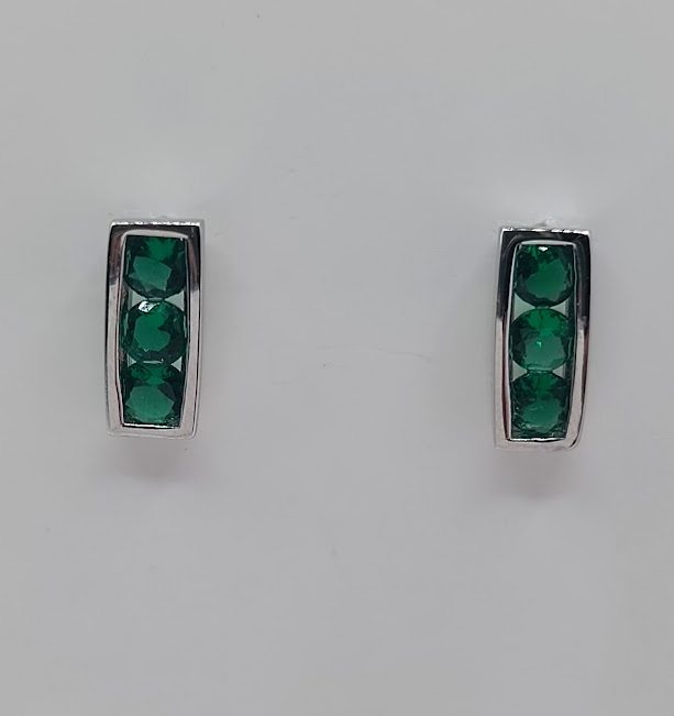 E-0068 E ARO PLATA RODIO ZIRCON ESMERALDA