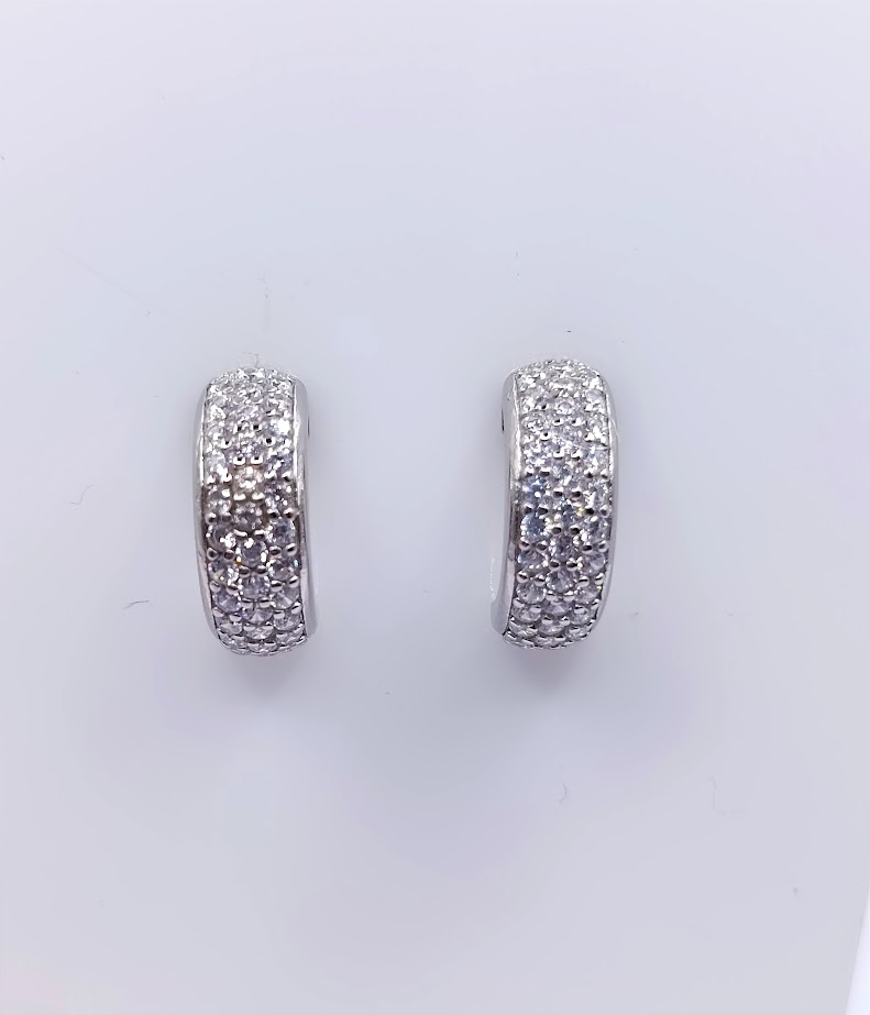 E-0099 ARO PLATA RODINADO MEDIA ARGOLLA PAVE
