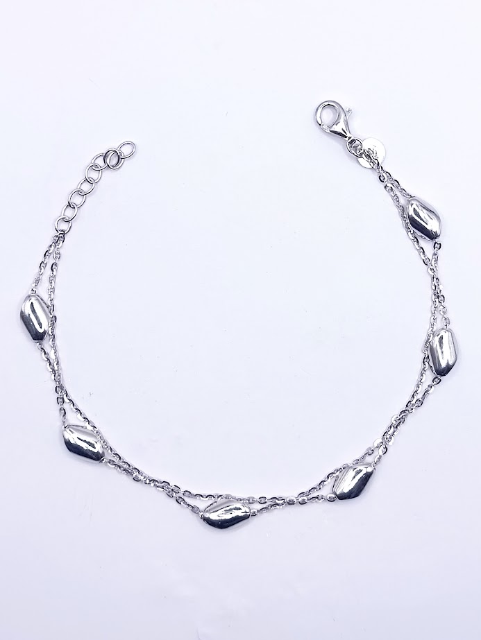 PULSERA PLATA RODINADO DOBLE GRANO 3D(R XL002F XC58)