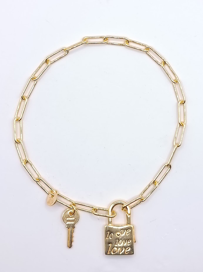 PULSERA PLATA 1 MICRON DE ORO 24K CANDADO LLAVE (KSP FLL B057)