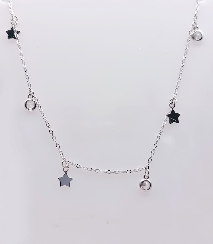SWN10312-08 COLLAR PLATA RHODIO CADENA ESTENSIBLE