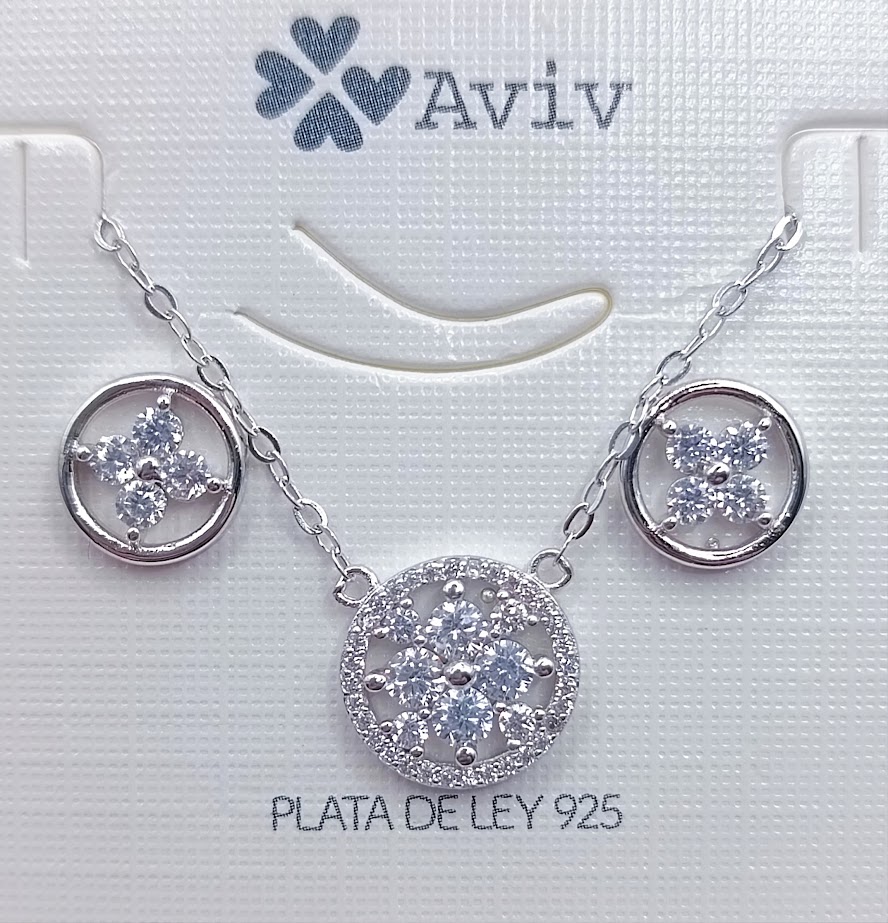 SWE10717-08 CONJUNTO SET PLATA RHODIO CADENA ESTENSIBLE