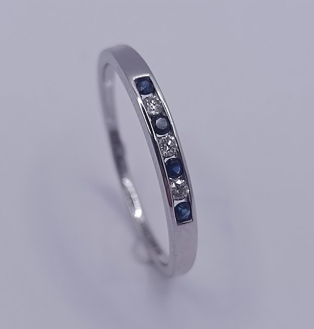 KR05-79846-*16 ANILLO ORO BLANCO { 3 DIAMANTE 6 ptos & 4 ZAFIRO14 ptos }